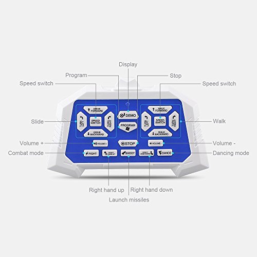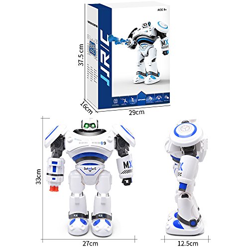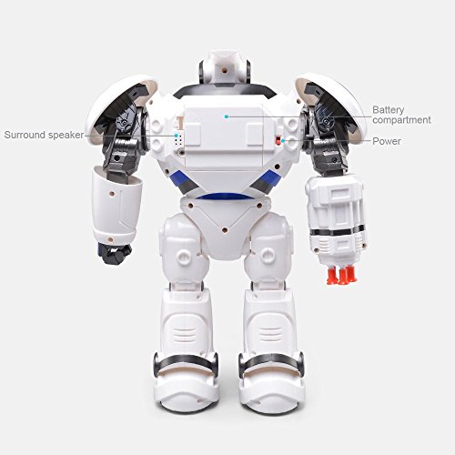 -. Feature : √ Hi,i am an intelligent robot,i can be kid's COMPANION,keeps kids engaged and entertained; i also can be HOME ARTICLES, displays at home as decorations. / √ I 'm an Amazing NEW educational rc robot toy, i can help kids to learn beginning sciences and build their habits. I'm an extremely nice playing toys robotic kits with kids. / √ I have a strong ability to sense your gestures, you can use your hand to show me to move forward/backward, turn left/right; if you want me to do more, try the remote control, with which you can ask me to walk, to sing, to dance, and to teach you some good habits and popular science. / √ I can entry combat mode,where the bullets can be shot towards various directions in the air like a hero. My Colorful LED eyes combination of sound makes a more interactive play time. / √ I'm very suitable as a birthday present, Christmas gifts, Halloween gifts to family and friends age 8+, i can't wait to see you!
