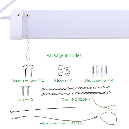 ✔ BENEFITS: Sunco's LED Shop Light is designed using incomparable material and has a lifetime of 50,000 hours. With our INSTANT ON feature, you never have to worry about flickering. The light is MERCURY FREE and contains NO UV, making it safe for the home and environment. All purchases come with an instructional manual for easy, simple and fast installation. Surface & Suspend Mount. Plug-n-Play, 5' plug-in cord, no wiring needed. 18.5" pull cord switch. NO humming sound.