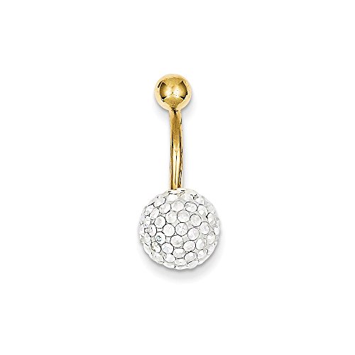 Product DescriptionSolid 10k Yellow Gold with Ab Crystal Ball Belly Dangle (11mm x 23mm)0
