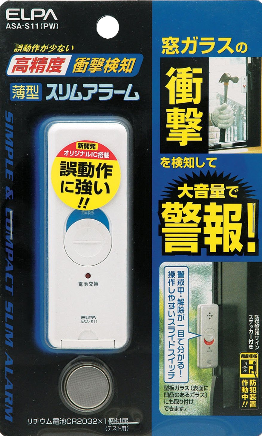 ◆ Since the impact detection type detects only glass breakage and impact, there is no worry of malfunctioning due to rain, wind, vibration due to opening and closing of the window, etc.