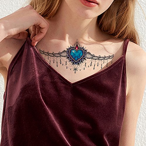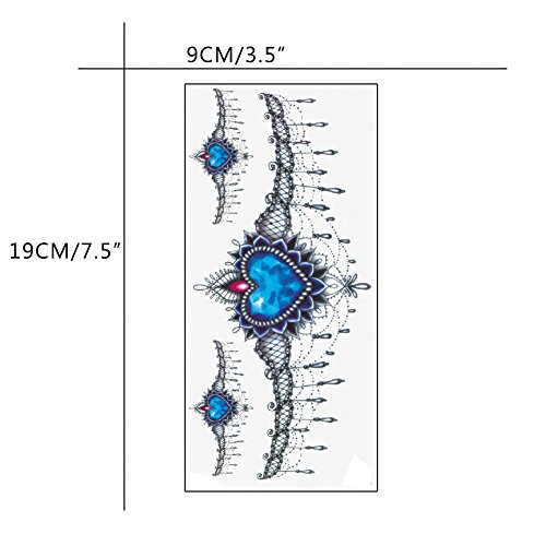 TAFLY Blue Gem Lace Temporary Tattoo Fake Sexy Body Art Tattoos Stickers 5 Sheets
