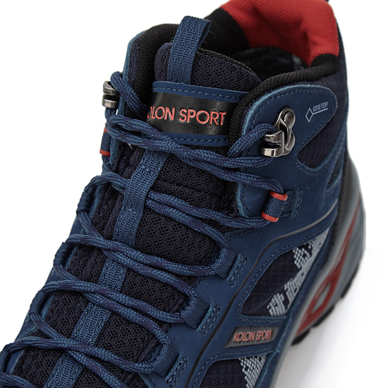 - 소가죽 소재와 고어텍스 소재를 더하여 고급스러운 남성 트레킹화.