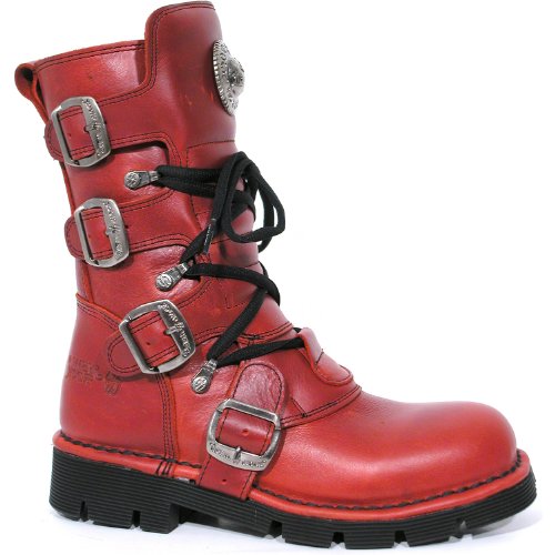 Amazon.com Give your look some serious edge with this rough and tough boot from New Rock. The smooth leather upper is adorned with buckle after buckle giving it total attitude, while the easy side zipper, lugged outsole, and padded insole ensure total comfort and ease. 0