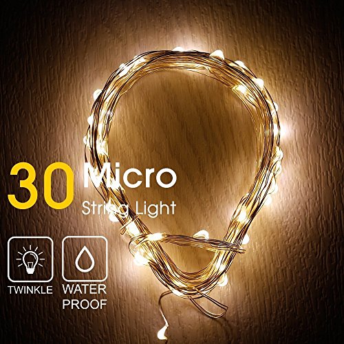 LIDORE Micro 30 Warm White LED String Lights with 8 modes. Waterproof series. 3AA Battery Operated