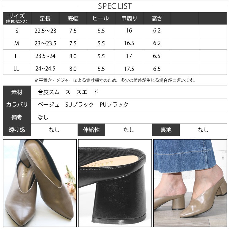 S :足長 22.5-23cm 底幅 7.5cm ヒール 5.5cm 甲周り 16.0cm 高さ 6.2cm