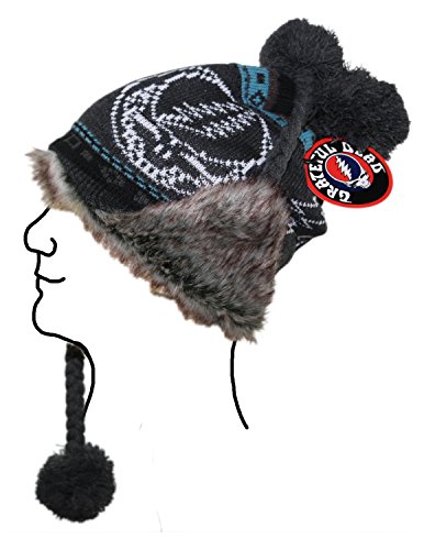 (Grateful Dead)/Accessories/Hats/DIRECT FROM USA/Grateful Dead Knit Ski Hat with Ear Flaps Faux Fur Lining and Pom Pom - 4 Designs