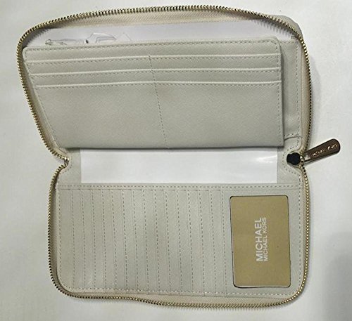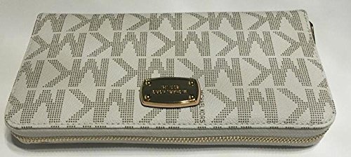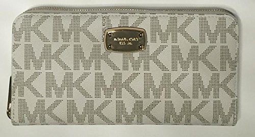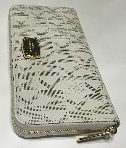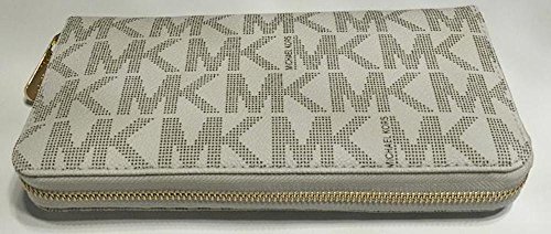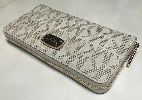 Michael Kors ZA Jet Set Large Travel Continental Signature MK Vanilla PVC Wallet Clutch Organizer Planner