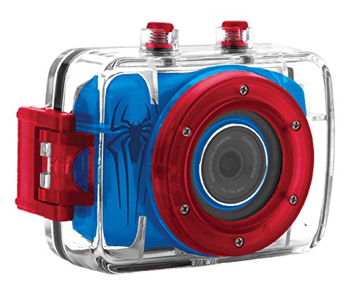 The Spiderman Action Camcorder is a compact digital video camera with an underwater housing. It can capture stunning 5.1 Megapixel still images, along with recording video at 720p. The 2.0" full touch LCD screen serves as both a viewfinder for framing and a playback monitor. The camera also features a 4x zoom, lithium ion rechargeable battery, and a MicroSD slot for up to 32GB of memory. A helmet and bike mount are also included.Feature