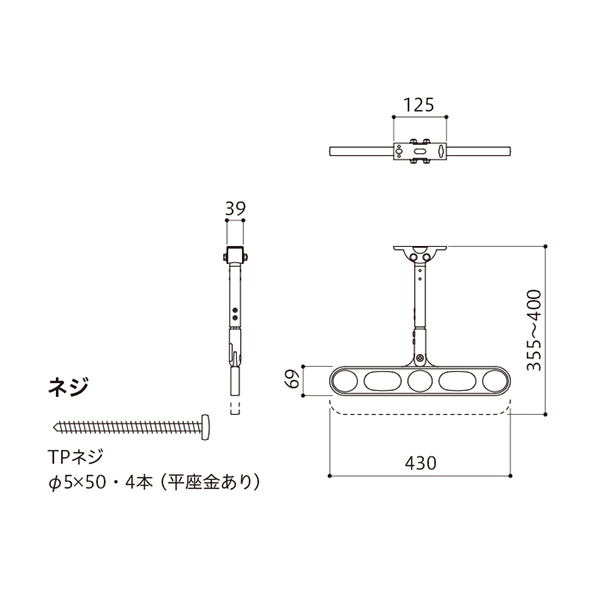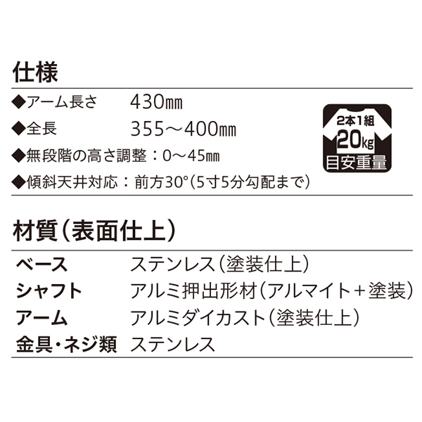 ●材質:ベース部:ステンレス シャフト:アルミ押出材 アーム:アルミダイカスト