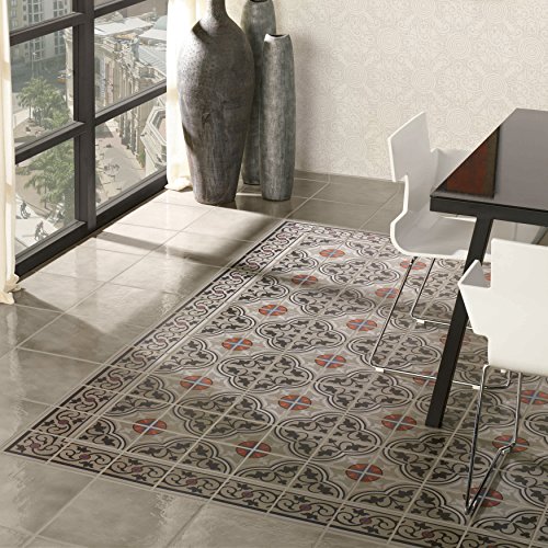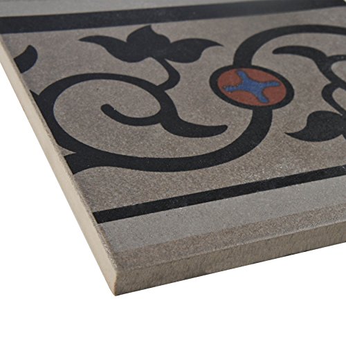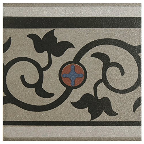 SomerTile FNU7CQAF Zementu Quatro And Porcelain Floor and Wall Border Tile, 7" x 7", Gray/Black/Terracotta/Blue
