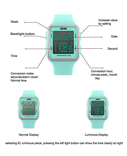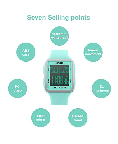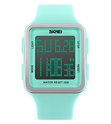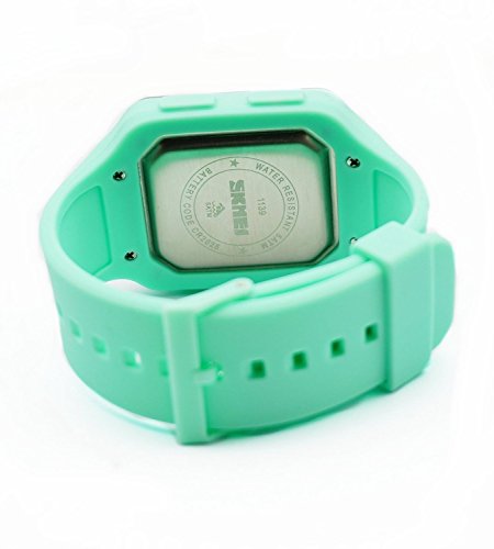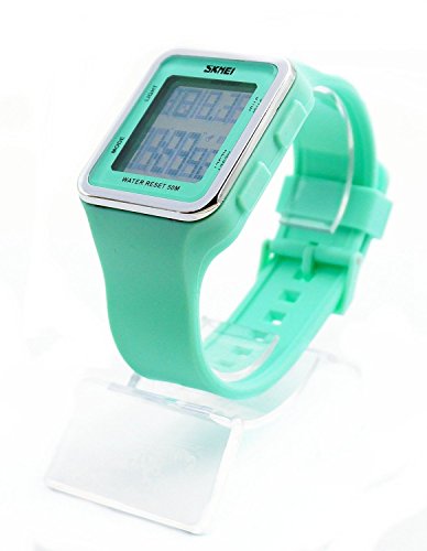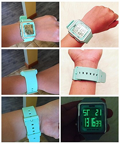 -. Title : Women's Digital Sport Multifunction Waterproof Big Face Square Silicone Strap Watch Light Green