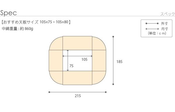 ●オススメこたつサイズ(約):105×75cm