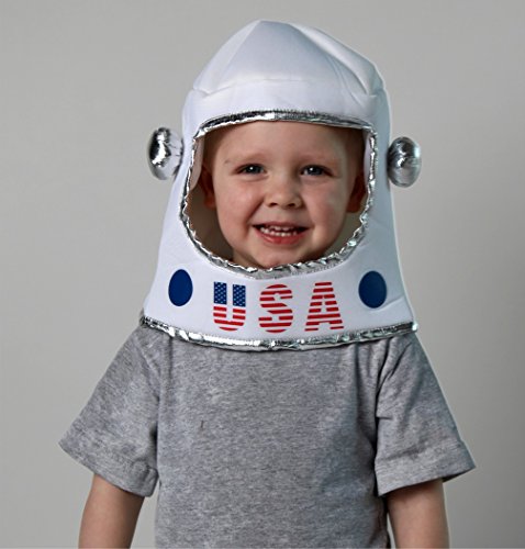 Get ready to blast off with this adorable pretend play unisex astronaut hat. This fun polyester Astronaut Helmet fits both kids and small adults for a delightful addition to kids' career days at school or as a way to complete your Halloween costume. Polyester fabric. High quality embroidered American flag emblem. Spot clean with a damp cloth as needed. Imported.