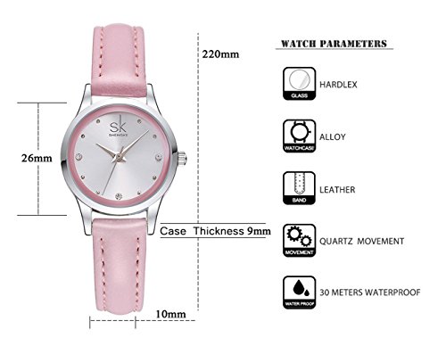-. Binding : Watch -. Brand : Shengke -. Department : Womens -. EAN : 0612068773392 -. Feature : Ultra-thin design is comfortable for your wrist / The dial diameter is about 26mm, band width is about 10mm and length is about 22cm / Original Japan quartz movenment:Using top stainless steel parts,precision and stable the movement will service longer time / Genuine leather material:The band is adapted to precision casting Genuine material.It is more abrasion resistant that usual.and comfortable to wear it.Which can perfectly match with the wrist / Classic pink color strap with white dial matches your summer clothes easily -. Label : EA watch -. Manufacturer : EA watch -. MPN : K0008L -. PartNumber : K0008L -. ProductGroup : Watch -. ProductTypeName : WATCH -. Publisher : EA watch -. Studio : EA watch -. Title : SHENGKE SK K0008L Fashion Luxury Bracelet Leather Wrist Watch with Diamond for Womens and ladies-Pink -. UPC : 612068773392