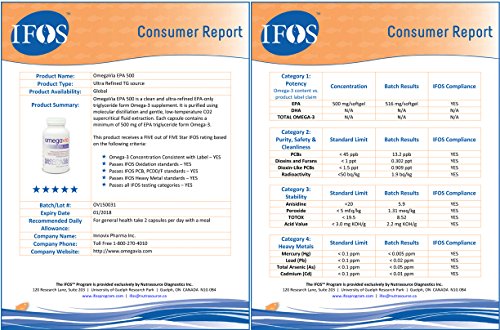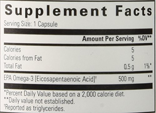 -. Feature : A clean and ultra-concentrated EPA-only triglyceride form omega-3. / Small, easy-to-swallow pills, 500 mg EPA per capsule. Less than 10 mg DHA. / Natural enteric coating. Helps prevent burping. / IFOS 5-star certified. Independently certified by third-party for your peace of mind. Each batch tested for purity, potency and freshness. Made in USA (No Chinese oils). / Purified by Heat-Free Supercritical CO2 Extraction (less heat-stress on oil and much higher purity).