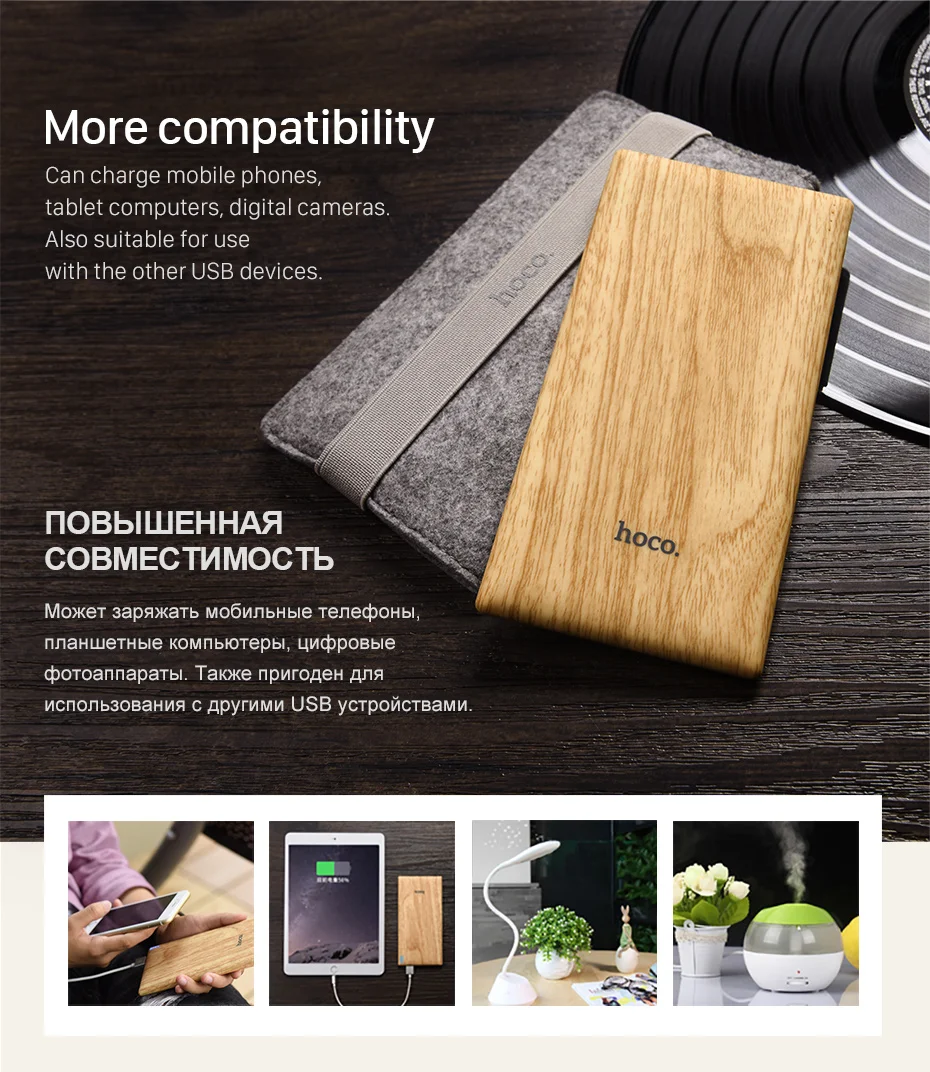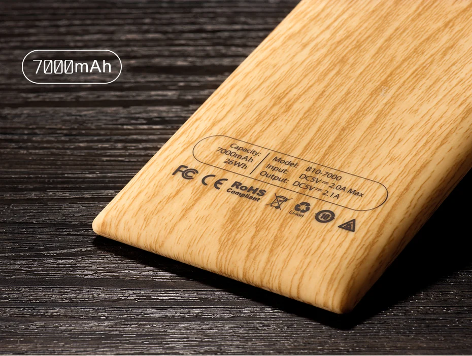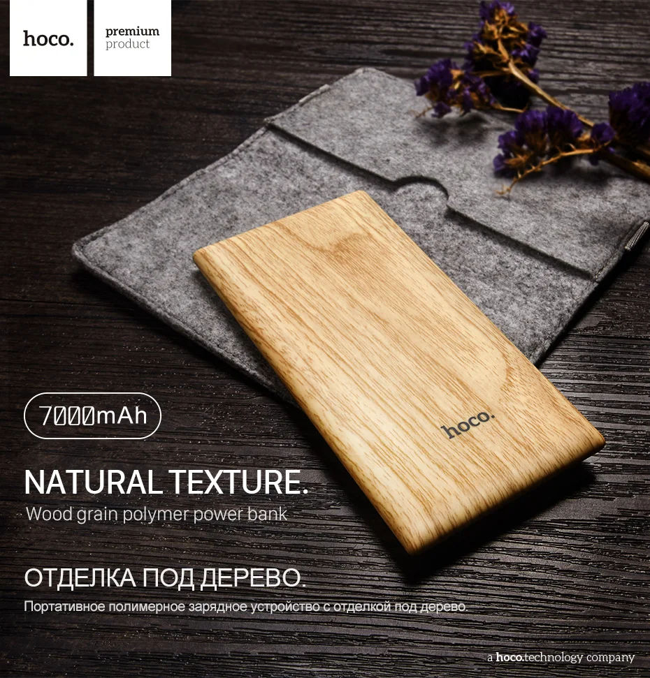 HOCO 7000mAh Wood Texture Portable Power Bank Single USB pover 7000mah poverbank for iPhone Samsung Xiaomi Mobile Powerbank Slim External Battery
