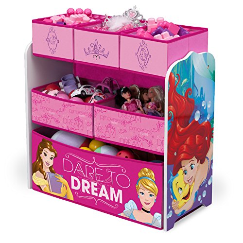 This Disney Princess Multi-Bin Toy Organizer from Delta Children will keep your child's castle cute and clean. Built to withstand whatever kids throw its way, this storage piece features six uniquely sized fabric bins supported by a sturdy frame. Finished with colorful graphics of Disney's most popular princesses, Cinderella, Belle, Ariel and Rapunzel, it makes cleaning up a royal adventure each and every day. Delta Children was founded around the idea of making safe, high-quality children's furniture affordable for all families. They know there's nothing more important than safety when it comes your child's play space. That's why all products by Delta Children are built with long-lasing materials to ensure they stand up to years of jumping and playing.Feature