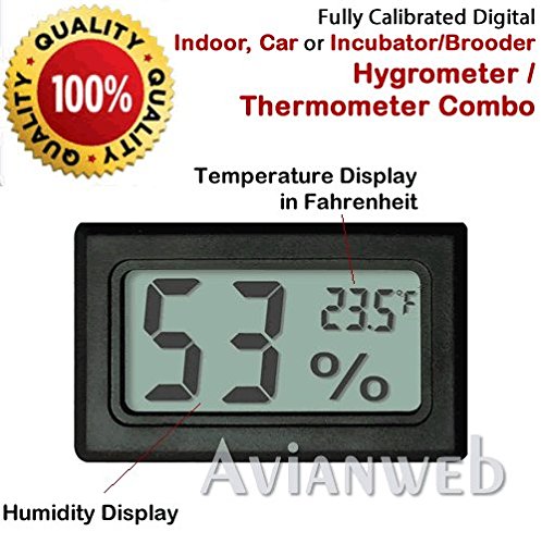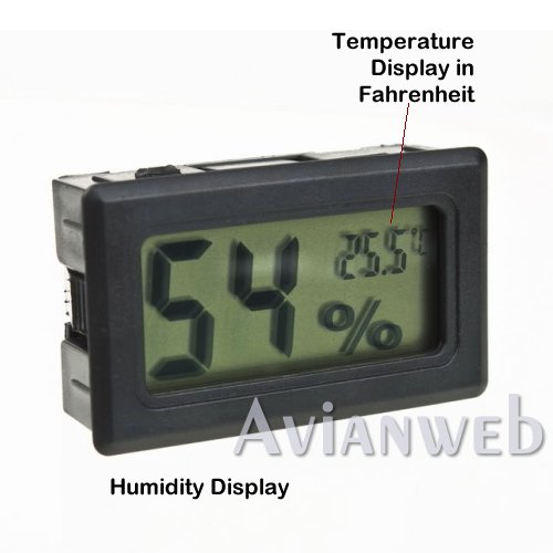 Studio : Avianweb Publisher : Avianweb Binding : Lawn Patio Product Description As is the case with any hygrometer/thermometer, it will take this unit some time to settle on the correct temperature / humidity after placing in the battery or after placing it into a new location. We guarantee these units to be accurate within the acceptable range of error, and will warrant and replace any units that do not perform as promised. Please note: There is a metallic piece on the left upper side that serves to keep the battery in place. On occasion, this piece is pushed down when the battery is inserted. If this happens, please remove the battery, push the metallic piece back to the side and reinsert the battery. In almost 100% of all cases, this will resolve any issues that you may initially have. If you do need help, please contact us for technical support or replacement/ return. We will support our products and customer satisfaction is important to us. Please Note: Avianweb reserves the right to change specifications in order to conform to regulations, improve product design and/or enhance functionality of the product. 0