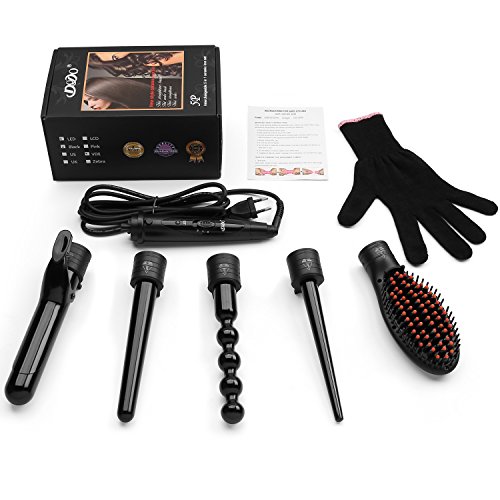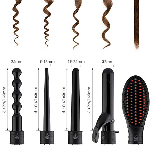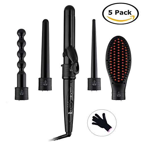 Romeker 5 in 1 Hair Curler Curling Iron Wand Set- 0.3 to 1.26 Inch Interchangeable Ceramic Barrel Wand Curling Iron for All Hair Types with Gloves