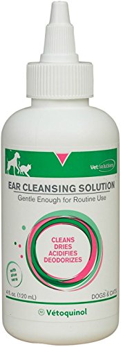 -. Feature : Vet Solutions Ear Cleansing Solution is formulated to deodorize, clean, dry and acidify your pet's ears, promoting maintenance of healthy ears and preventing external ear infections. / Vet Solutions Ear Cleansing Solution has Aloe Vera for added soothing. / Good for both daily use of excessively dirty ears or weekly maintenance of healthy ears.