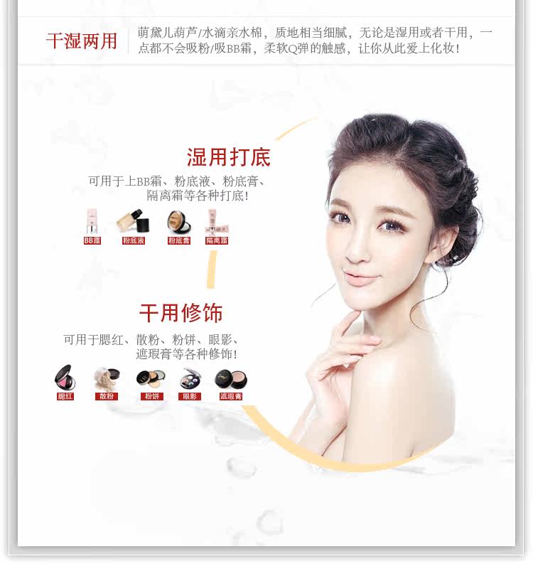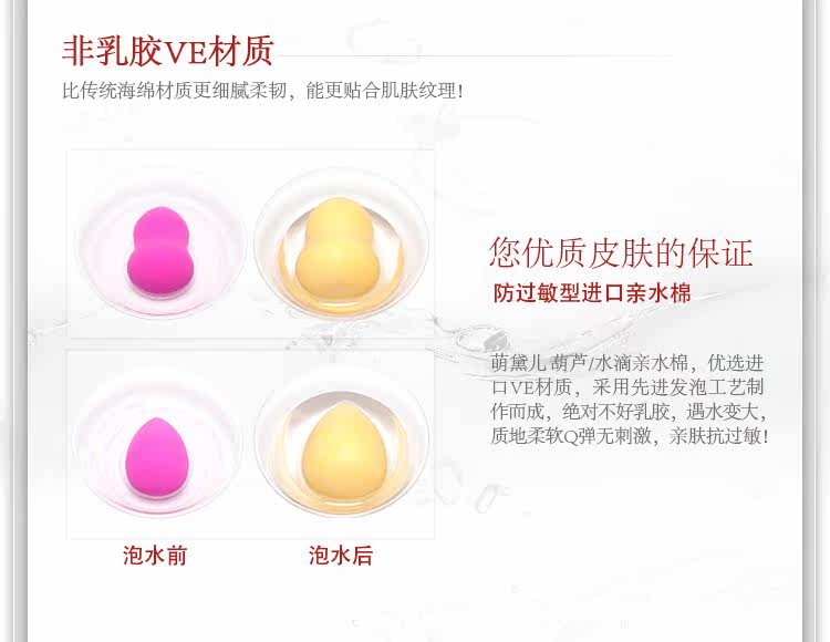 厂家直销非乳胶、泡水变大粉扑、BB蛋.现活动特价8.9元买2送1,带彩盒的哦!爱美的亲们赶快行动起来哦!