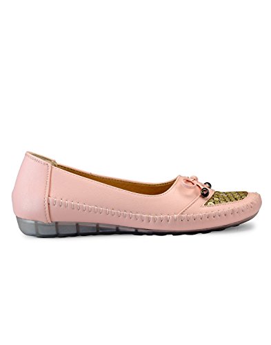 Product DescriptionColor: Pink Closing: Slip-on Material: Synthetic Upper Rubber Sole Heel Shape: Flat Care: Wipe with a clean cloth to remove dust.0