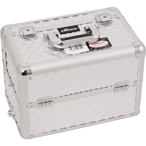 Sunrise Ognissanti Heavy Duty Makeup Case Professional Nail Travel Organizer Box, Silver Diamond, 7 Pound