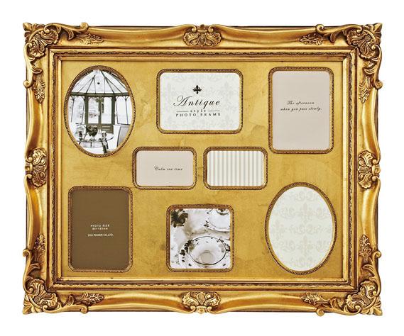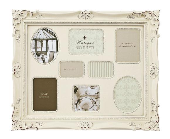 重厚感のあるシルバーとゴールドに上品なアンティークバニラ。リッチな装飾に古きよきクラシックスタイルへの気分をゆだねて。 製造国:中国 素材・材質:合成樹脂、ガラス 商品サイズ:W42.5×H34.5×D4cm 仕様:8ウィンドー壁掛用、合成樹脂製マット付 ※サプライヤー直送品  ご注文後3~4営業日後の出荷となります【商品名】アンティークスタイルフォトフレーム 8ウィンドー AF-04001・シルバー