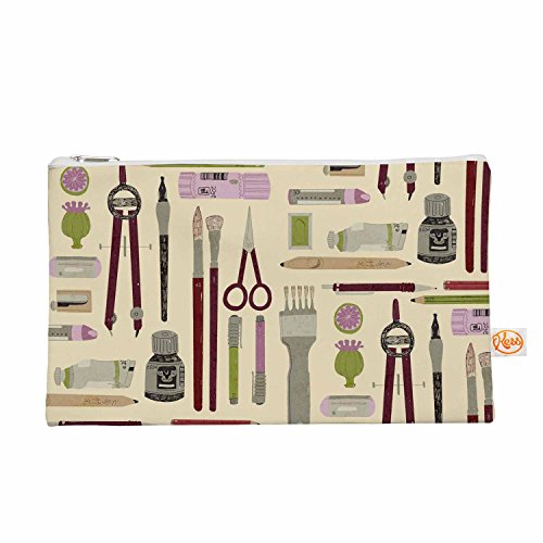 KESS InHouse Judith Loske "Art Supplies" Tan Pattern Everything Bag, 8.4" x 4" (JL1001AEP03)