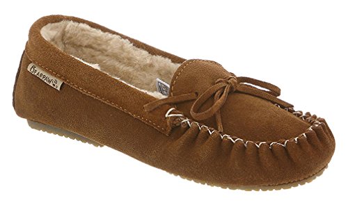 The Ashlynn has the style of a moccasin and the comfort of a slipper. You'll think you're walking on air as your feet are enveloped with a soft cow suede upper and sheepskin footbed. Perfect for your favorite jeans or dress! Cow suede upper. Moc toe featuring a contrast stitch color and decorative lace. Full sheepskin lining and footbed. Woven flag logo. TPR rubber driving moc outsole with EVA cushion.Feature