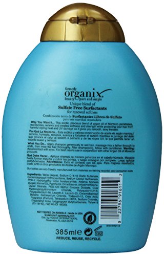 This exotic precious blend of Moroccan argan oil penetrates, moisturizes, renews and creates softness and strength while protecting your hair from harmful styling heat and UV damage. Unique blend of sulphate free product surfactants.