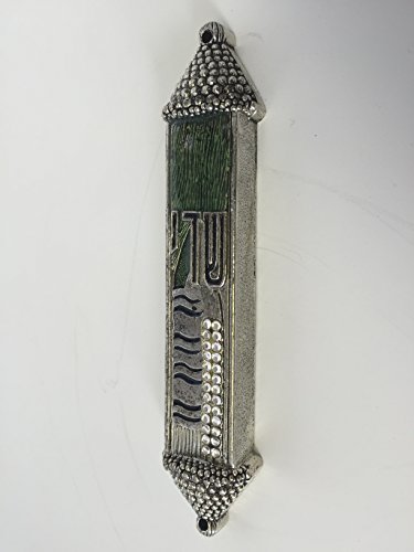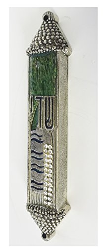 Pewter Mezuzah - Triangular Ball Ends with Large 'Shadai' and Tallit with Cubic Zirconia Designs