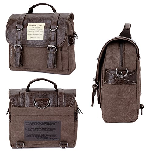 -. Title : Kywa Canvas Leather Messenger Bag for Men Shoulder Bag Handle Bag Laptop Briefcase