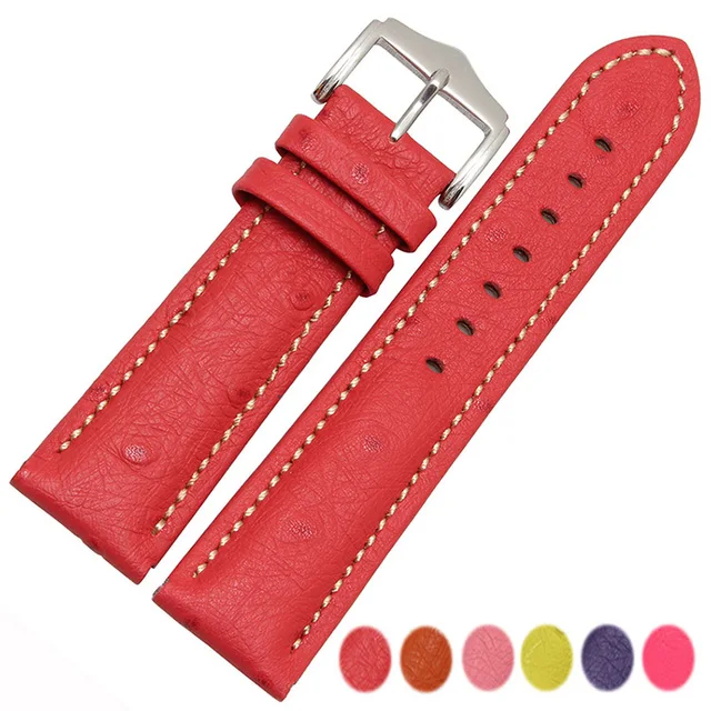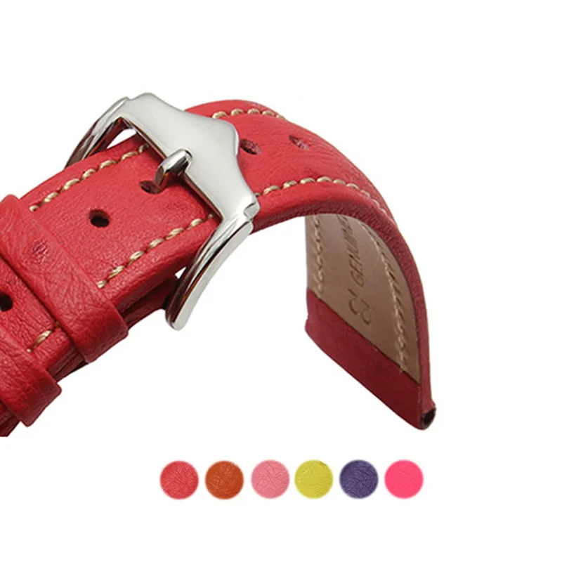 | [해외] 다채로운 벨트 18 20 22 미리메터 남성 여성 레드 옐로우 오렌지 색 가죽 시계 스트랩 손목 핀 버클 액세서리 브랜드 시계 |