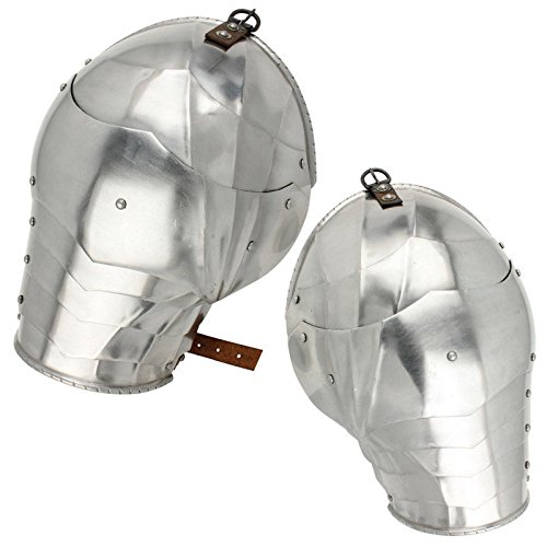 Product Description The Medieval 15th Century Gothic Spaulder is modeled after the popular style of plate armor shoulder protection that was prominent during the 15th century. It is characterized by a series of semicircular lames which go over the shoulder and upper arm. Specifically, Gothic design really made a splash into medieval armor styles with its curves ending in cusps and its fluting and rippling work. Comfort is added with interior leather. With authentic design, this handsome pair is crafted from 18 gauge steel with cusps and fluting on each lame. Adjustable leather straps and buckle allow easy attachment to an arming jacket or gambeson. Fully functional with ease of movement, these spaulders are great for costumes and re-enactments. 0
