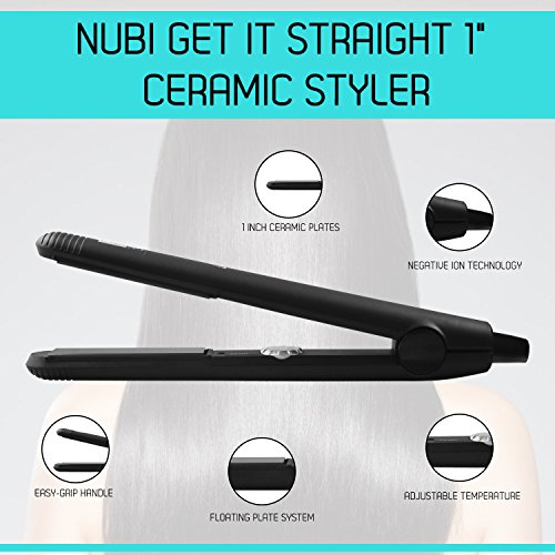 Nubi Hair Get It Straight 1 Inch Ceramic Flat Iron | Offers Adjustable Temperature and Floating Plate Technology | Black