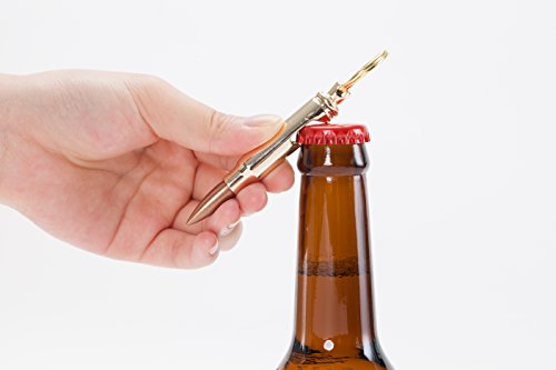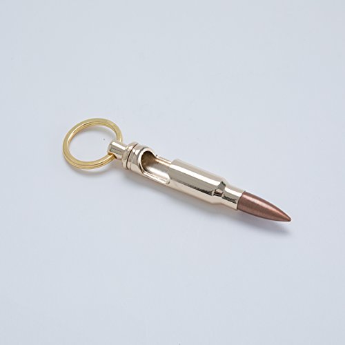 -. Feature : Perfect gift for Father's Day, groomsmen, anniversaries and many other holidays / .308 caliber bullet with length measured at 3.15 inch / Works great to opener bottles, enjoy the parties with your friends or family / The keychain is well designed at the top, looks more elegant / Zinc alloy construction with brass finish, keep your opener from tarnishing