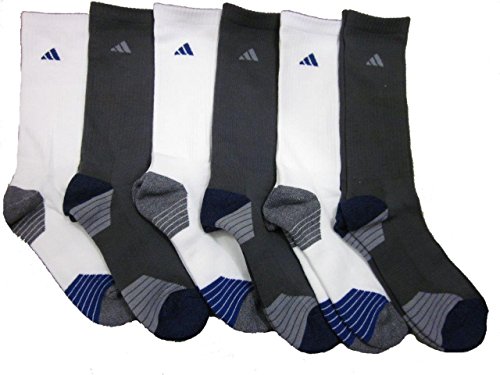 -. Binding : Apparel -. Brand : -. Color : Steel/White/Royal -. Department : mens -. EAN : 0716106839337 -. Feature : 6 Pack Crew Socks / They are cushioned for comfort with a welt cuff for added durability / ClimaLite construction to wick moisture and keep your feet dry. / Superior Yarns for extreme comfort and softness -. ProductGroup : Sports -. ProductTypeName : SPORTING_GOODS -. Size : Shoe: 6-13 -. Title : Men's Athletic Crew Socks (6-Pack) Steel/White/Royal -. UPC : 716106839337