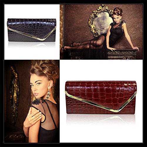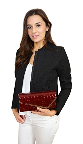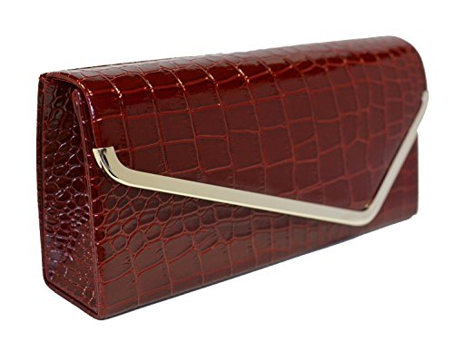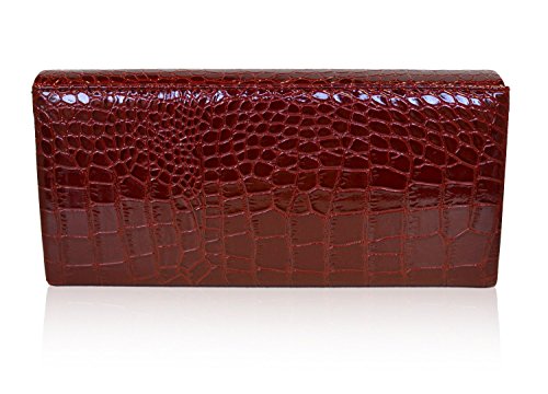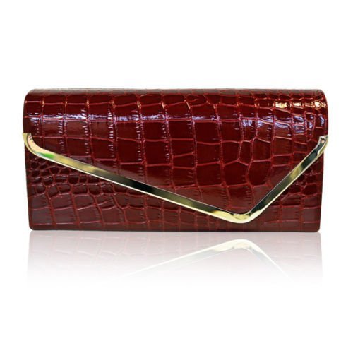 -. Title : Dunkelrot Crocodile Embossed Lackleder Kupplung mit Staubbeutel