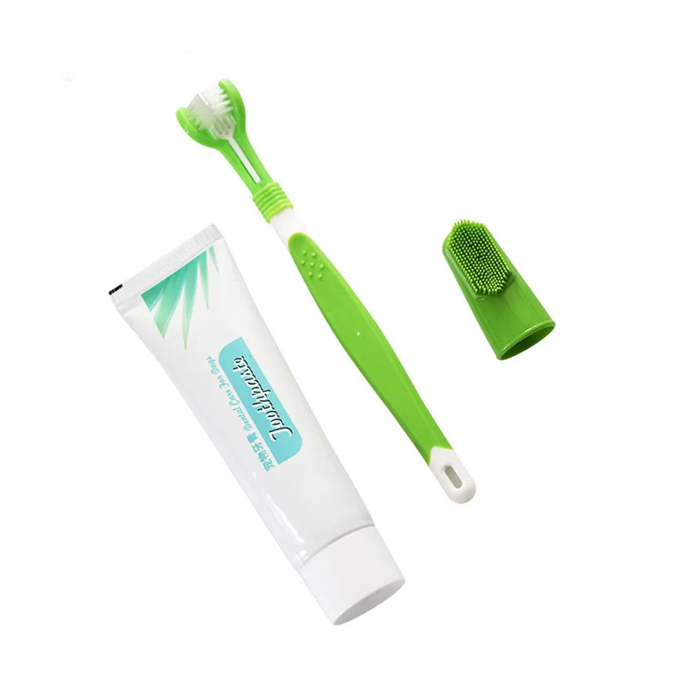 Dog Three-Head Dog Pet Cat Puppy Vanilla Toothpaste Toothbrush Back Up Brush Set Teeth Care Puppies Dental Kit Non-foaming