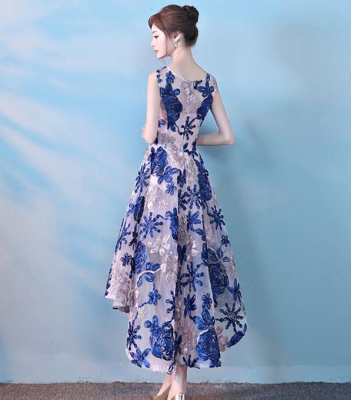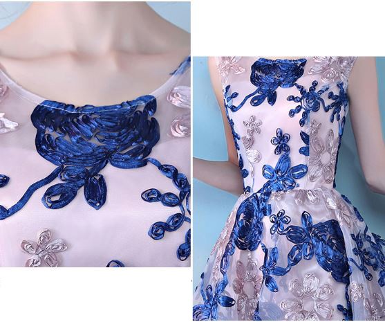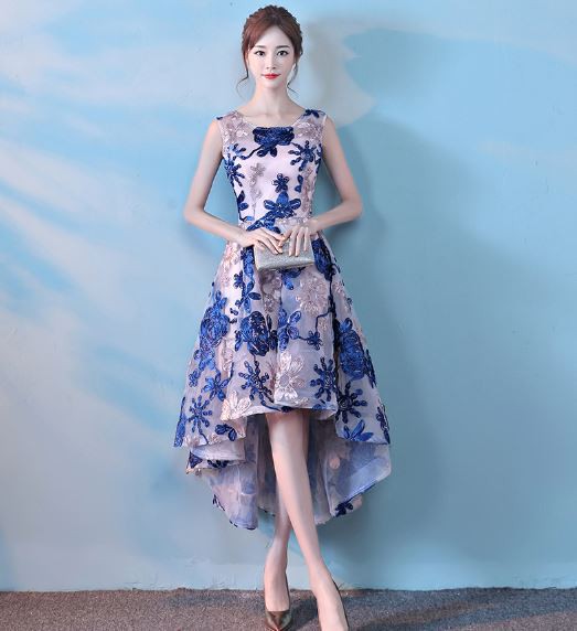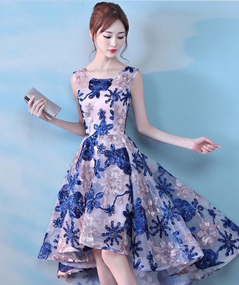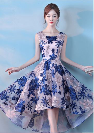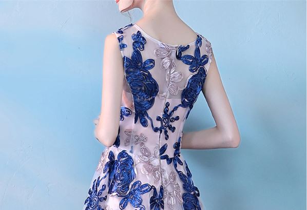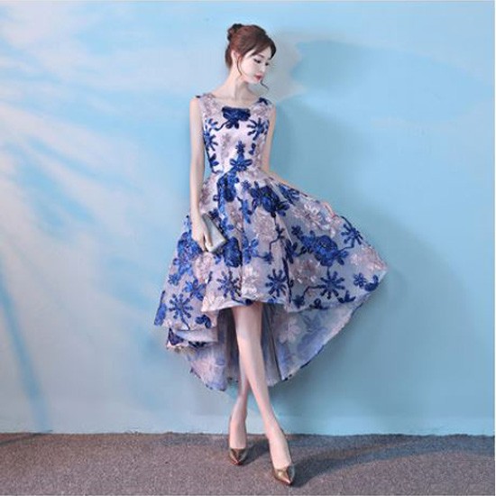 お花モチーフのレース模様が華やかなパーティードレスです。