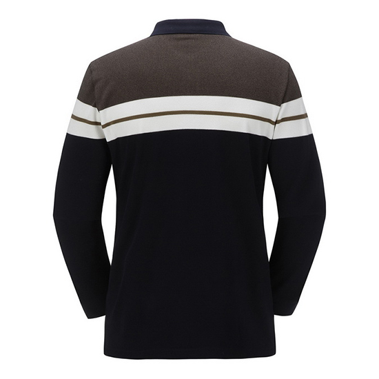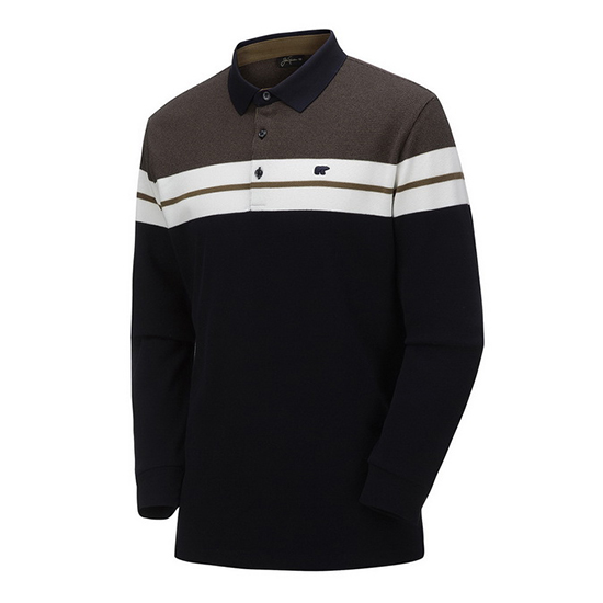 - 다양한 컬러 라인 믹스 디테일로 세련된 남성 티셔츠.