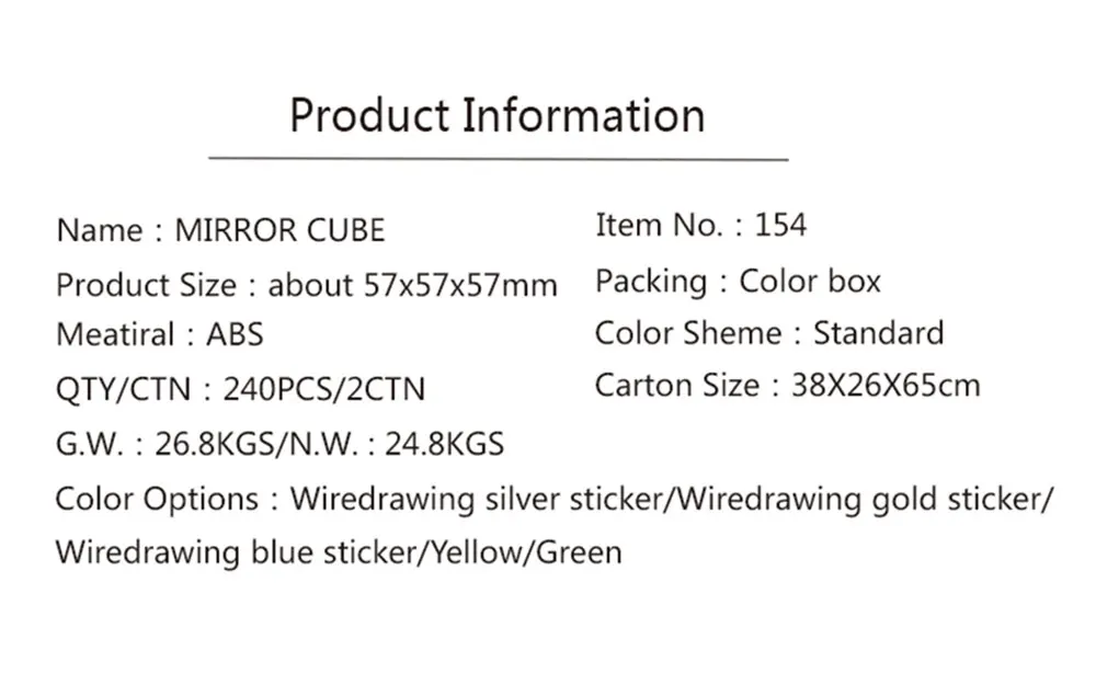 Model Number:154 Mirror Cube