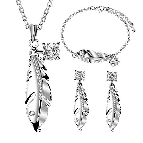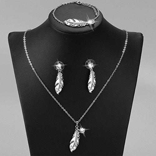 -. Title : Btime "Autumn Leaves" Feather Shaped Earrings Necklace Bracelet Jewelry Set