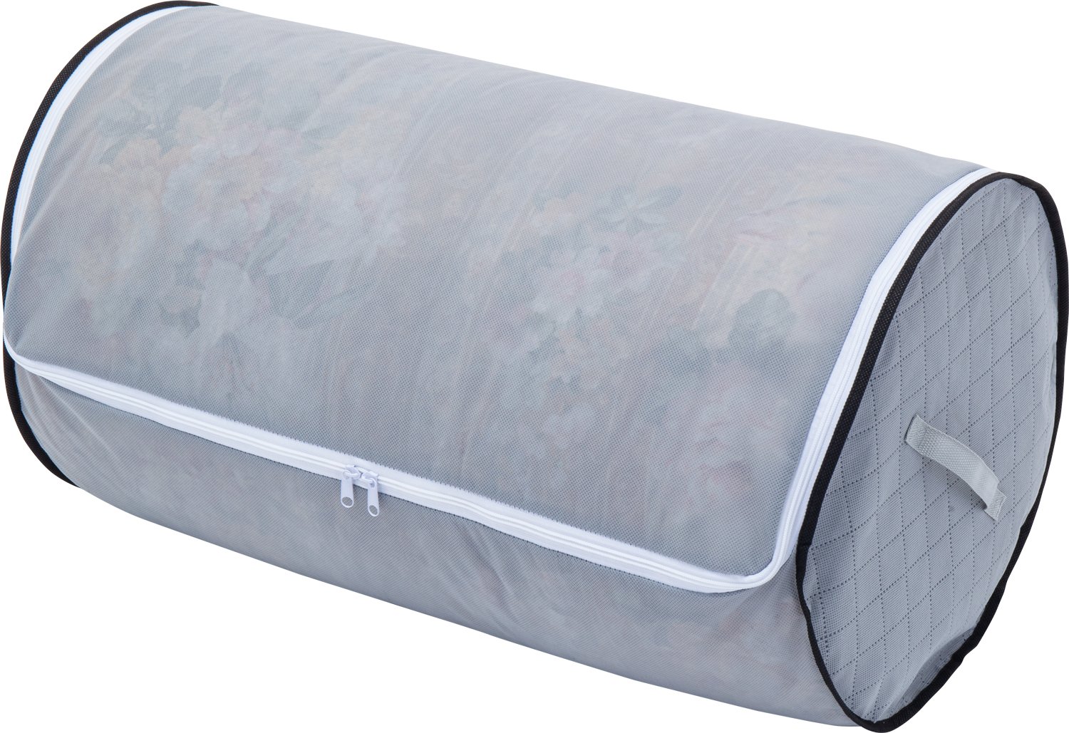 かさばる羽毛布団をコンパクトに丸めて収納できるケース。通気性の良い不織布に活性炭シートを挟んだ生地を使用。湿気やホコリから守りながら消臭もできる優れモノ! 活性炭シートが悪臭分子をしっかりキャッチ!活性炭は炭を更に高温で酸化させ多孔質にし、空気に触れる表面積を大きくしたものなので悪臭を吸収・吸着する働きに優れています。開けた時のあの嫌なニオイを抑えます。 ①羽毛布団をタテに3つ折りにする→②丸めて収納袋に入れる→③ファスナーを閉める のカンタン3ステップ。道具を使わないのでラクに収納できます。 円筒型で立てて収納可能。押し入れやクローゼットのデッドスペースを有効活用できます♪圧縮しすぎないので、次にご使用する際も羽毛がへたらず、出してすぐにご使用いただけます。急な来客時にも安心◎ サイズ:約幅70×径40cm  収納目安:羽毛ふとんシングル1枚