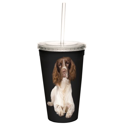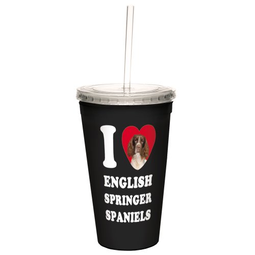 Tree-Free Greetings CC35048 I Heart English Springer Spaniels Artful Traveler Double-Walled Cool Cup with Reusable Straw, 16-Ounce