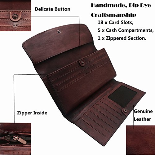 Womens Wallets Genuine Leather Large Capacity Handmade Card Holder Purse