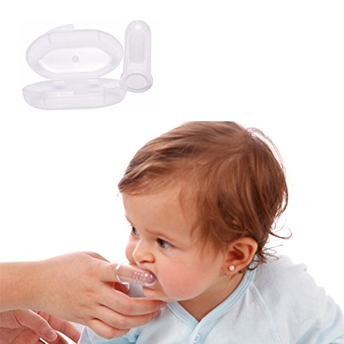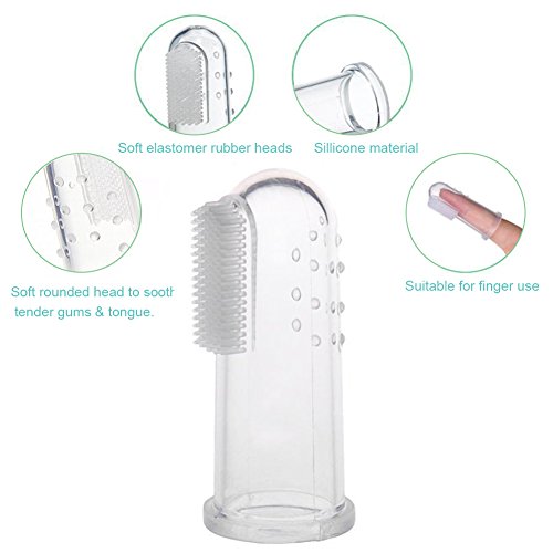 NNIUK finger toothbrush ANGTUO Finger Toothbrush is designed for parents with infants and toddlers. They are made of 100% food grade, non-toxic silicone material. High finish, tear resistance, aging resistance can not afford sticky. Even if the baby chew no problem! Intimate double-sided design (soft bristles and silicone dots) gives your baby's teeth double protection! The set includes: 3 transparent silicone finger toothbrush 3 dust transparent box Let your baby develop healthy and hygienic oral habits right from the start. We hope you will join us in our journey to protect your baby. Specific: Brand: ANGTUO Material: Food grade silicone size: 2.2 x 0.8 in Weight: 15g Color: clear, blue and pink. Applicable people: 0-2 years old.