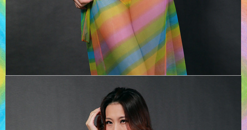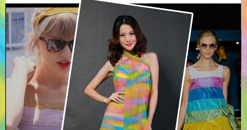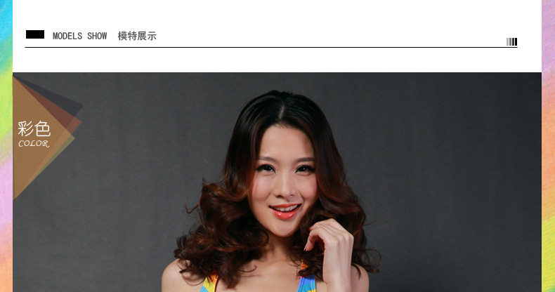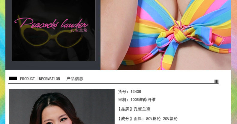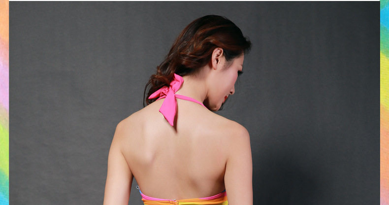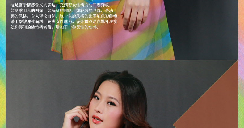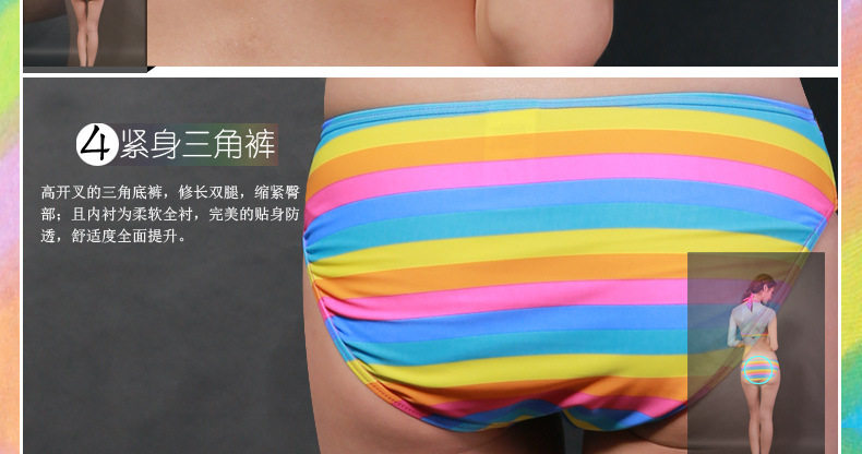 女士比基尼三角三件套披肩彩虹条纹聚拢钢托温泉游泳衣