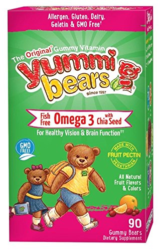 Yummi Bears Vegetarian Omega 3 with Chia A blend of essential Omega Fatty Acids sourced from Chia Seeds to promote healthy brain function, vision, and a strong immune system† in a delicious gummy vitamin for kids with no "fishy" taste.Feature